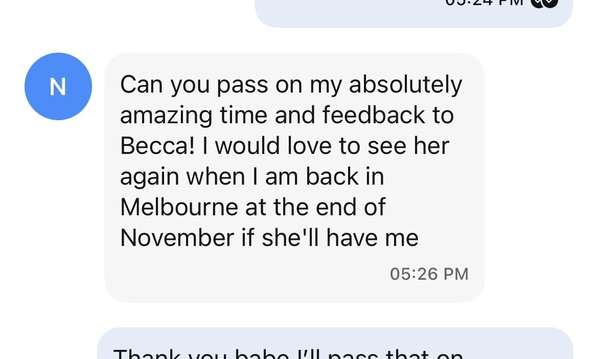 Hey I’m Becca! I’m a 27-year-old Aussie with a slim size 8 figure, natural B-cup breasts, blonde hair, blue eyes and a confident, dominant-playful energy.