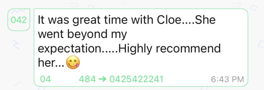 Hey I’m Cloe! I’m 24, Aussie, with a hourglass size 10 figure and natural D-cup breasts. Blonde hair, blue eyes and a naturally seductive energy, I love making you feel relaxed, released and completely pleased.